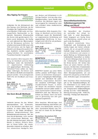 gekauft werden. Im Kursentgelt sind werden an bestimmten Körperparti- körperlich und geistig auf die berufli-